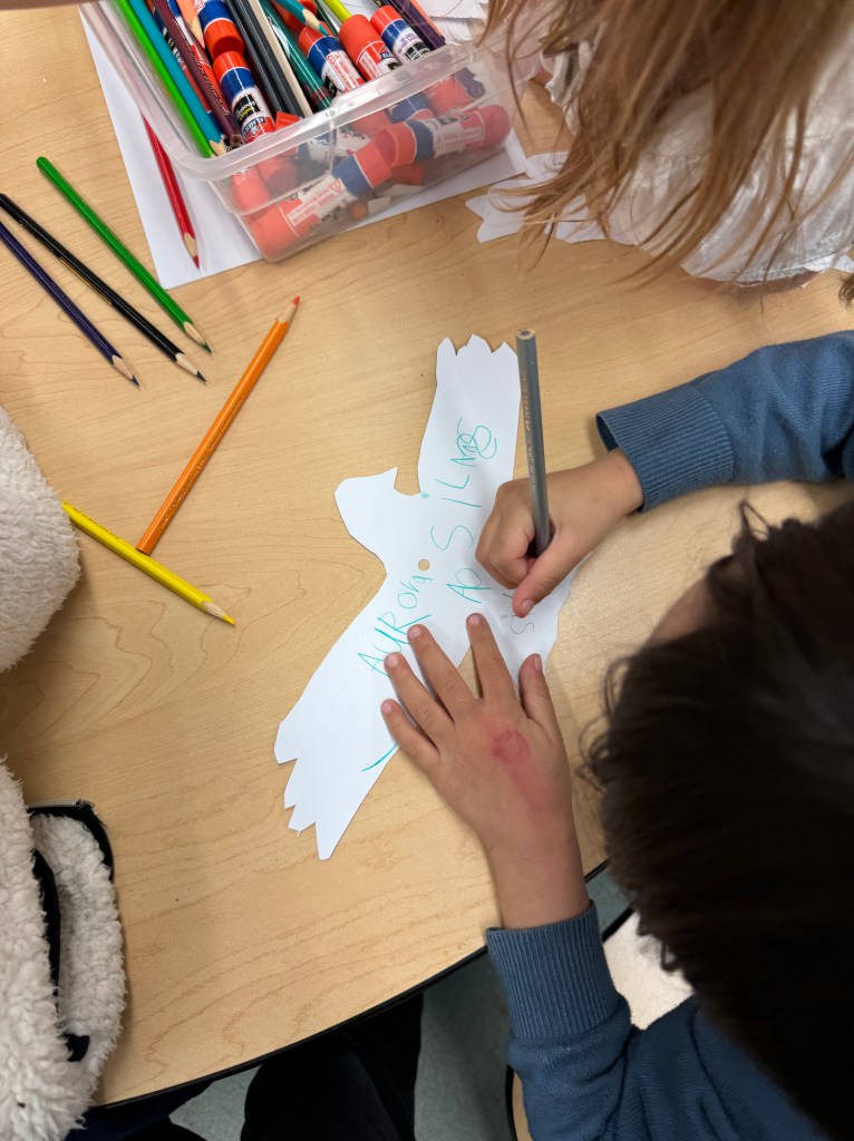 The winter is here. It is cold and dark after school. For some students in the Alighieri Montessori School, that means more time indoors. For the teachers that means sharing fun and challenging ways to bring Climate Nature inside. On one chilly December day, we explored what the birds do. The idea was to think about the flight and nesting that we notice outside. We asked the questions – what do you think birds use to make a nest ? Where do they find nesting materials ? What is the function of each of these things ?